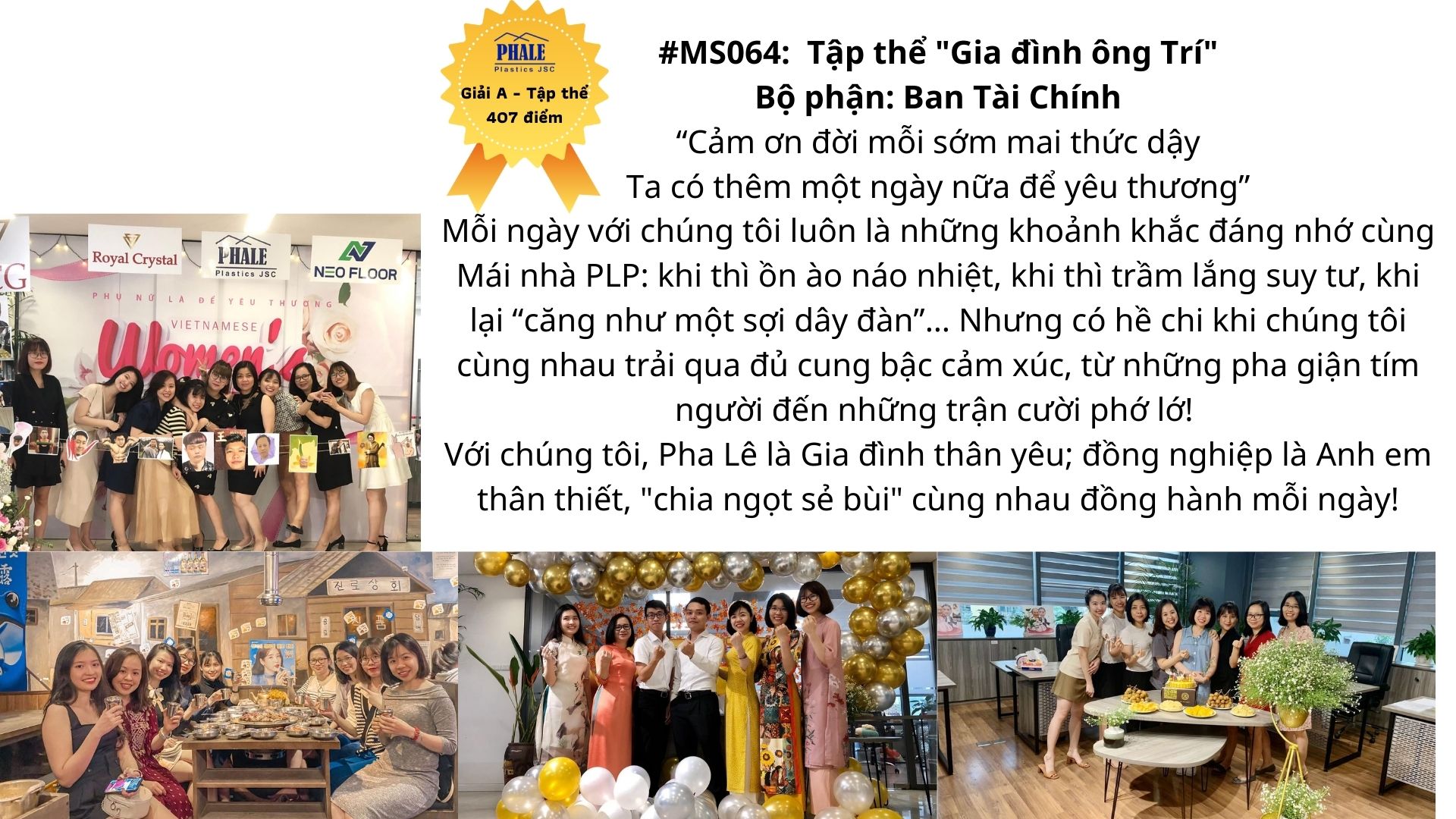 Cuộc thi không chỉ là dịp CBCNV được sẻ chia những câu chuyện, kỷ niệm, khoảnh khắc đẹp với Pha Lê mà còn thể hiện cả những nét đẹp lao động đời thường qua những công việc hàng ngày tưởng chừng như đơn giản nhưng đã góp phần đưa con thuyền Pha Lê vượt trùng khơi, vươn tới những tầm cao.