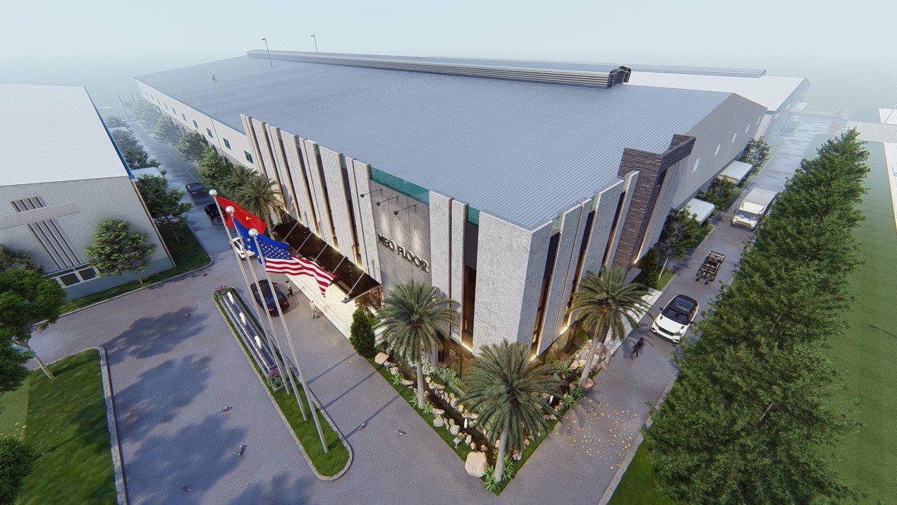 Hình ảnh toàn cảnh bên ngoài Nhà máy NEO FLOOR – Hải Phòng -phối cảnh 3D